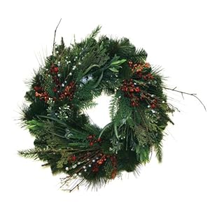 Good Tidings 24-Inch Australian Pine Artificial Christmas Wreath with Red Berries, Mistletoe and Eucalyptus